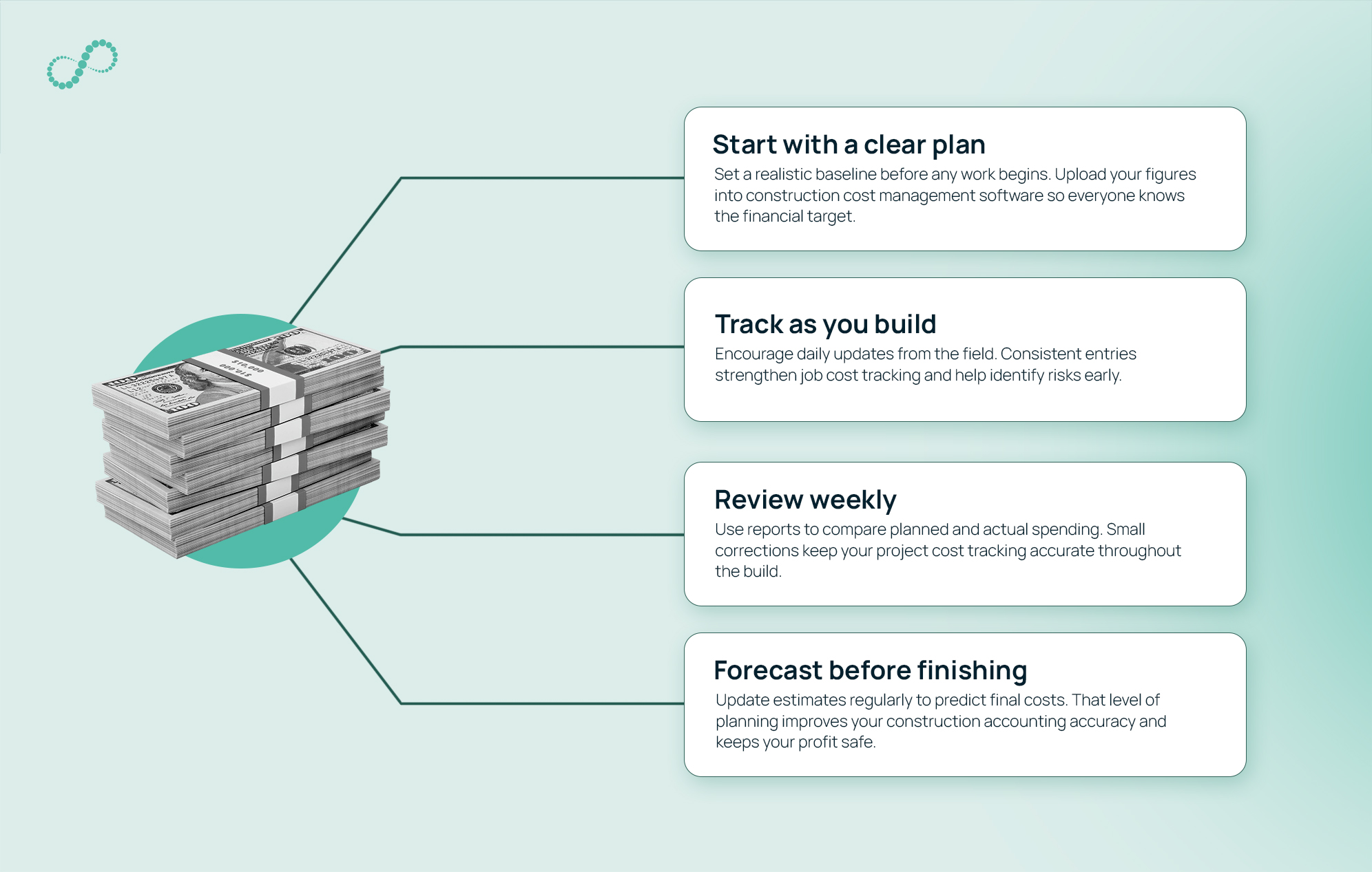 It combines smart construction cost control, efficient job cost tracking, accurate project cost tracking, and reliable construction accounting into one steady process that supports success.