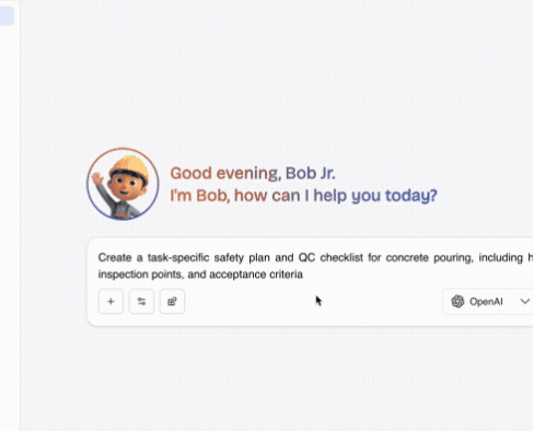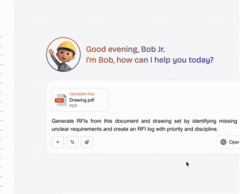 BOB Agent helps you work with construction documents more easily. You ask real project questions, review bids, check compliance, and get clear, reliable answers fast, all without digging through folders or switching platforms.