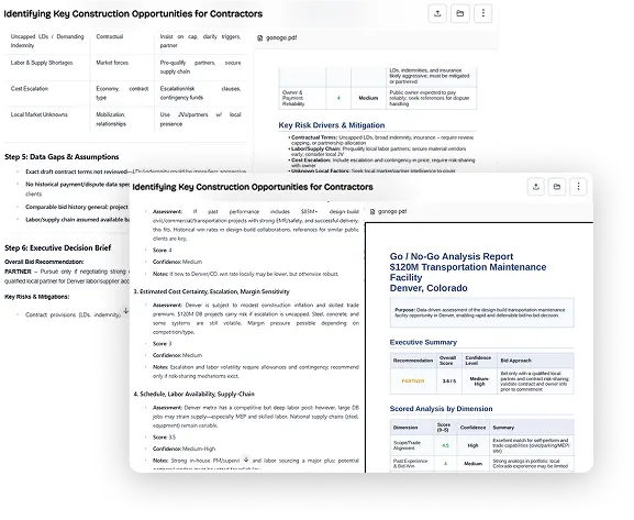 AI extracts scope and terms while highlighting risks and missing information for faster reviews.